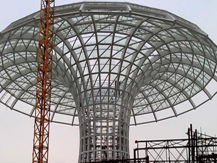 二、球形网架结构因其结构新颖,受力合理,自重轻、用钢量低等优点。如大型体育场馆球形白银螺栓球网架、公共场馆球形网架、电厂白银螺栓球网架、水泥工业球形网架、仓储物流球形网架、白银干煤棚工业球形网架、白银收费站白银加油站球形网架、展览中心、影剧院、商场、航站楼、候车厅、工厂白银车间、仓库、电视塔等球形螺栓球节点网架。国内球形网架结构主要分为:白银焊接球节点网架及螺栓球节点网架两种。螺栓球节点网架其构件工厂内加工量较大,现场安装便捷,适用于现场工期紧,白银施工条件、用电量受制约,网架形状复杂、白银杆件定位困难的异形结构。螺栓球节点球形网架系统基本由白银杆件、螺栓球、支撑支座等组成。按照节点形式可分为交叉白银桁架体系、四角锥体系、三角锥体系等。支撑方式多为固定支座支撑。对于大面积、大跨度及有特殊受力或伸缩要求的网架结构可采用橡胶支座、滑移支座、球铰支座等支撑形式,以满足结构自身的受力稳定、均衡,便于内力释放等设计要求。
